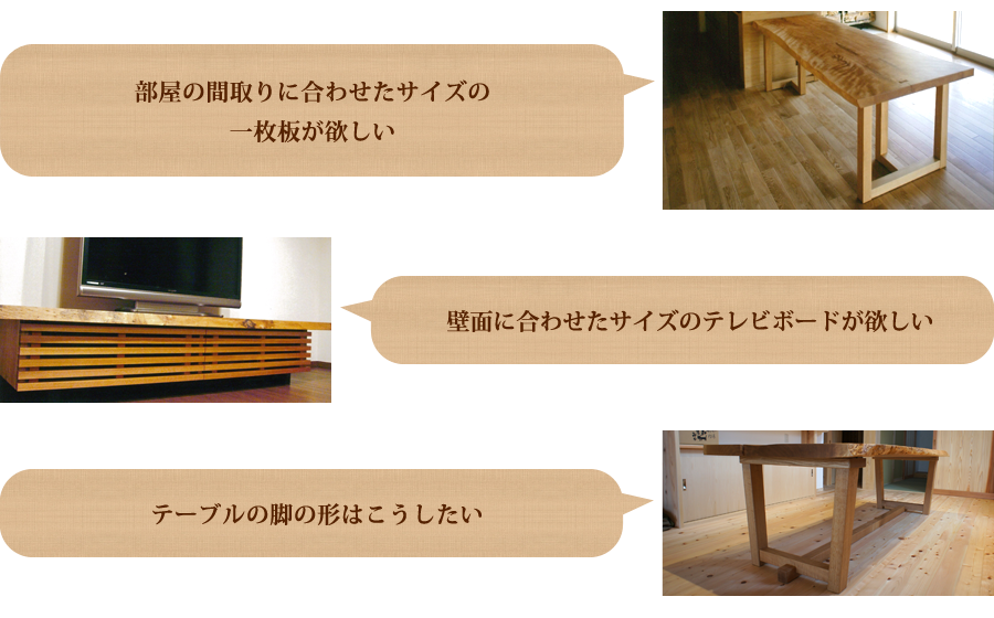 - 部屋の間取りに合わせたサイズの一枚板が欲しい